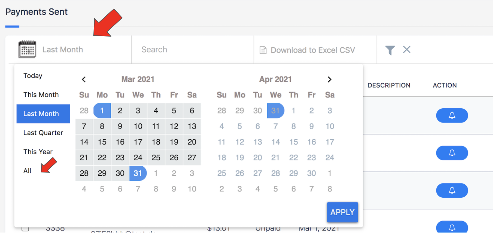 If you do not see what you are looking for, click the calendar to change the date and choose the appropriate time frame